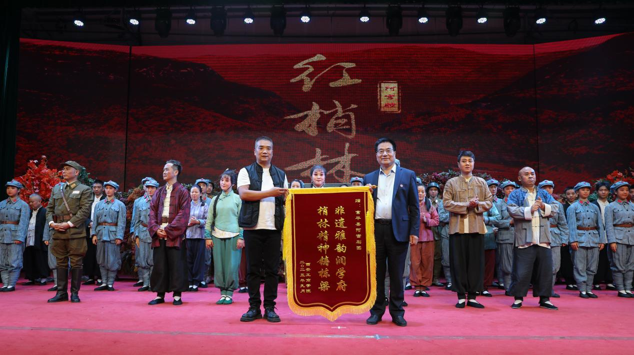 活动当天,蹈和文体馆内座无虚席,掌声经久不息。《红梢林》通过陕甘边照金革命根据地的真实历史故事,通过再现方云霞夫妇为代表的革命群众坚定跟党走、无私奉献的英雄事迹,生动诠释了“人民是历史的创造者”这一深刻真理。秦腔这一古老的艺术形式与红色革命主题的完美结合,让激昂的唱腔邂逅黄土高原的红色记忆,为我校学生带来了一场震撼的视听盛宴。