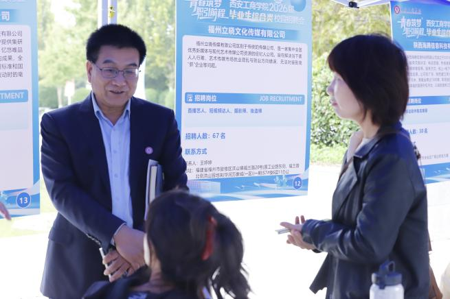 学校高度重视毕业生就业工作,学校副董事长龙和平深入招聘会场调研指导,亲切慰问了参会企业和广大毕业生。他与多家企业负责人深入交流,详细了解行业发展趋势和人才需求变化,并向企业大力推介我校办学特色、人才培养质量及2026届毕业生规模与专业分布情况。在与毕业生交流时,他关切询问同学们的求职意向、目标岗位及面试进展,倾听大家在求职过程中遇到的困惑与需求。并叮嘱同学们要抓住金秋求职的“黄金期”,结合自身专业优势与职业规划,理性选择岗位,将个人理想融入国家发展大局,在青春的赛道上跑出最好成绩。