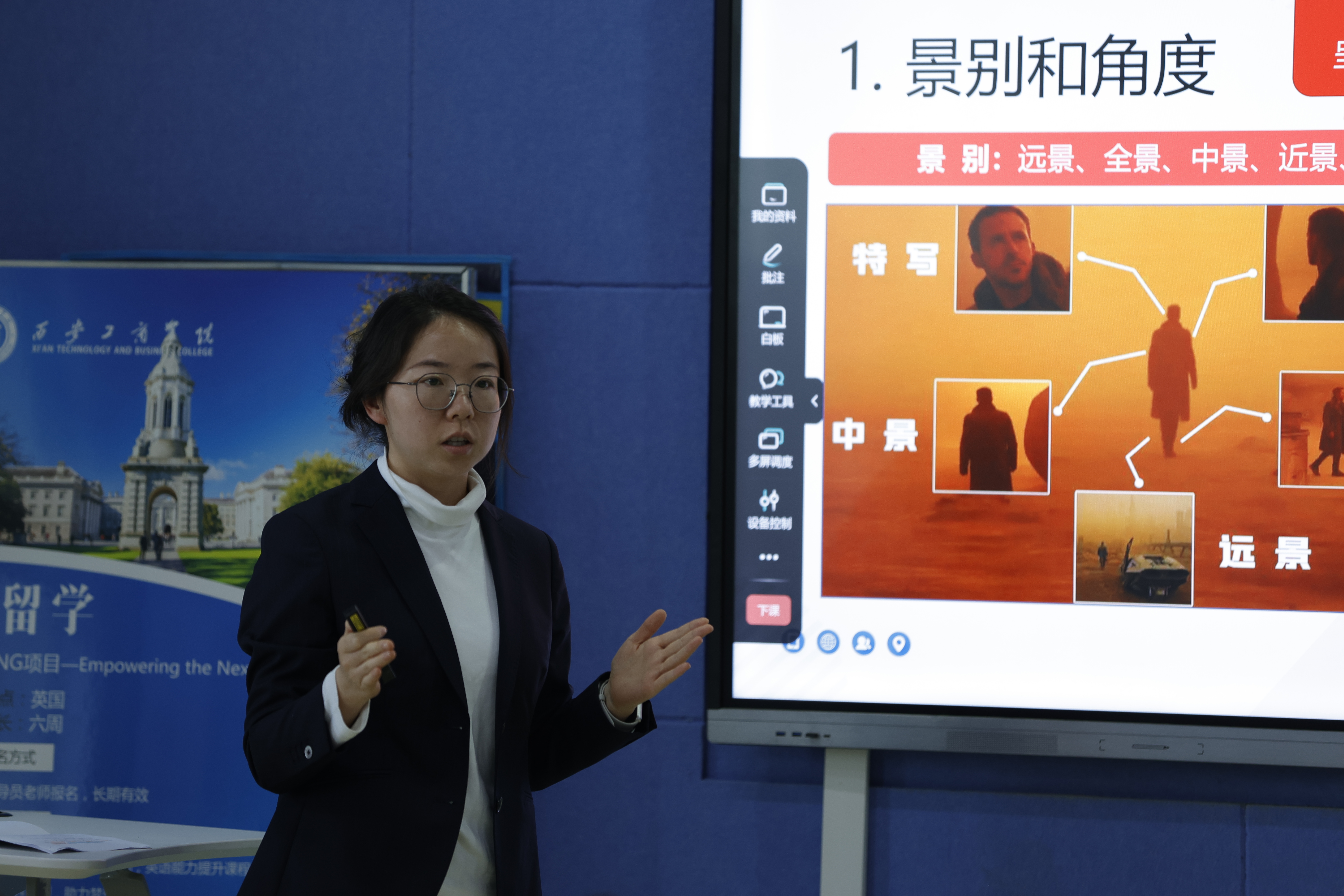 出征仪式现场,学校精心搭建的培训平台为学子们筑牢前行根基。党委宣传部赵锦锦老师以专业视角深耕宣传素材创作,从跨文化传播的语境差异到影像记录的细节技巧,系统讲解如何用镜头与文字定格研学点滴,展现西工商学子的专业素养与文化自信。