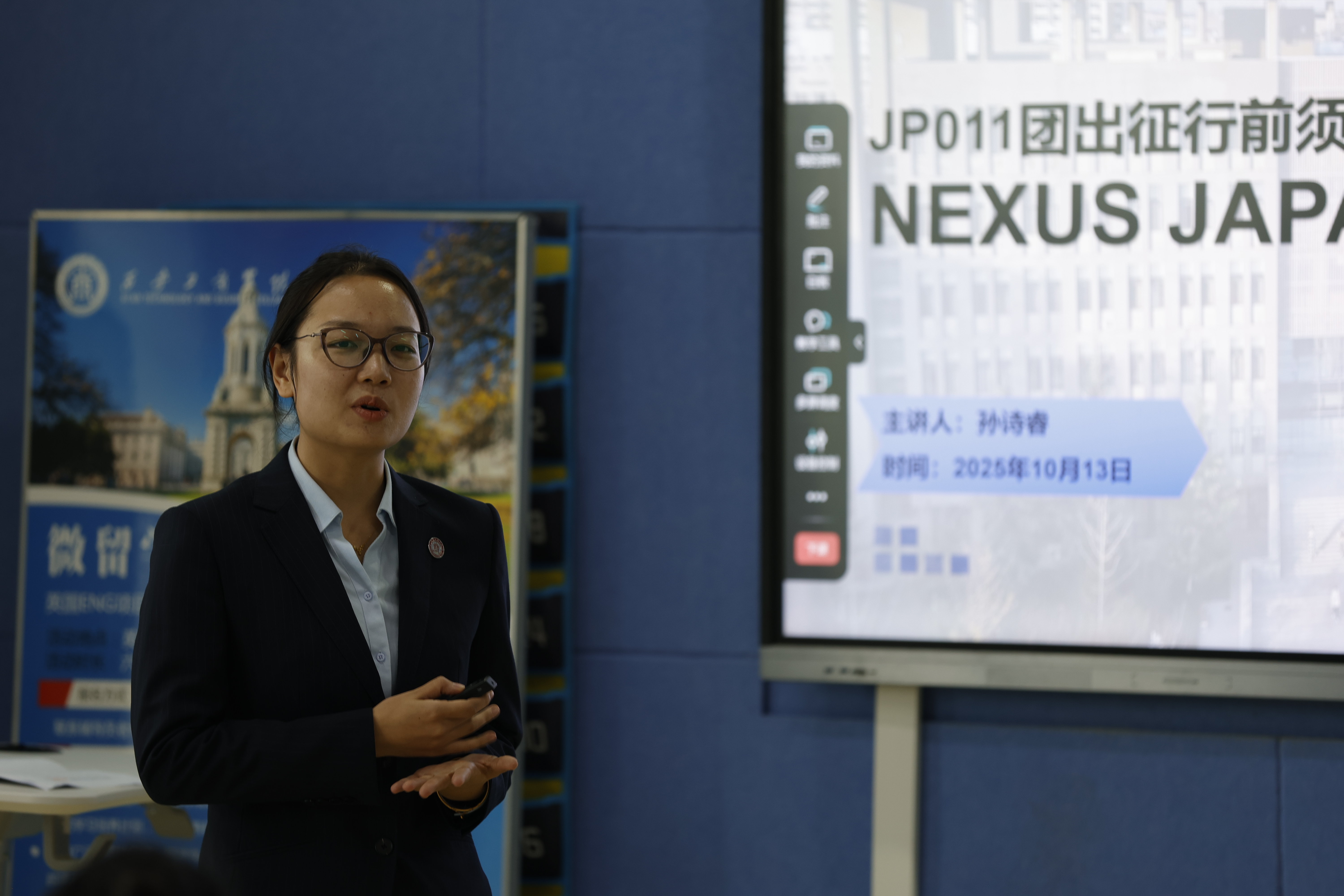 带队老师孙诗睿的动员讲话则为现场注入温暖而坚定的力量。“希望大家以开放之心拥抱未知,在课堂上锤炼思维,在京都古刹中感悟传承,在产业参访中启迪思考。” 她鼓励同学们突破自我边界,在跨文化碰撞中收获成长,让青春在国际舞台上绽放光彩。一句句叮嘱与期许,既承载着学校对 “高端化、全球化、个性化” 育人理念的践行,也为学子们注入前行的信心。