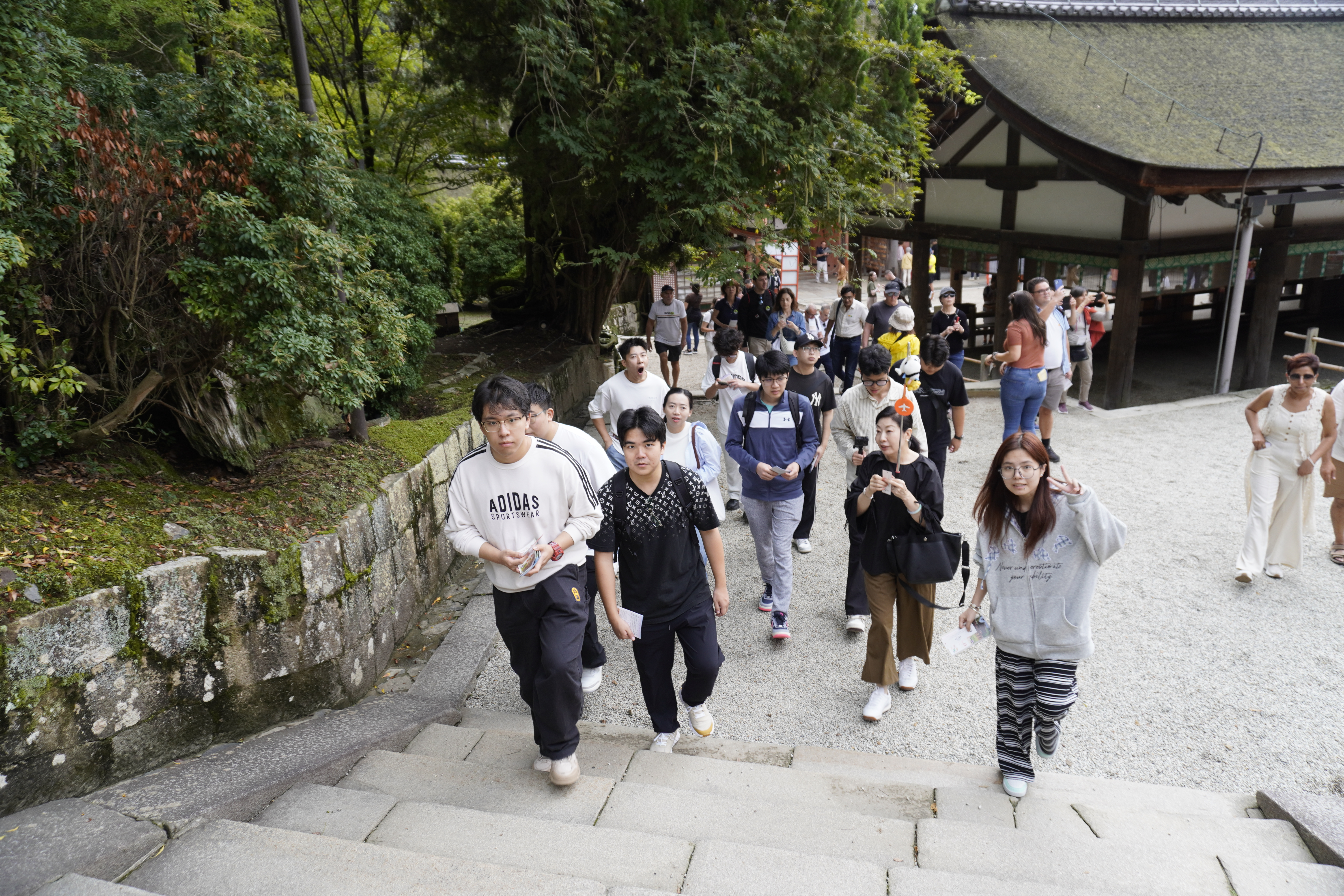 继对关西都市人文与学术殿堂的深度探索后,西安工商学院微留学团的学员们继续南行,将课堂延伸至千年古刹的静谧、百年匠坊的传承、自然灵境的和谐,直至本州南端的海阔天空,在跨越古今的对话与团队协作的温暖中,书写“和合领航 知行致远”的生动篇章。