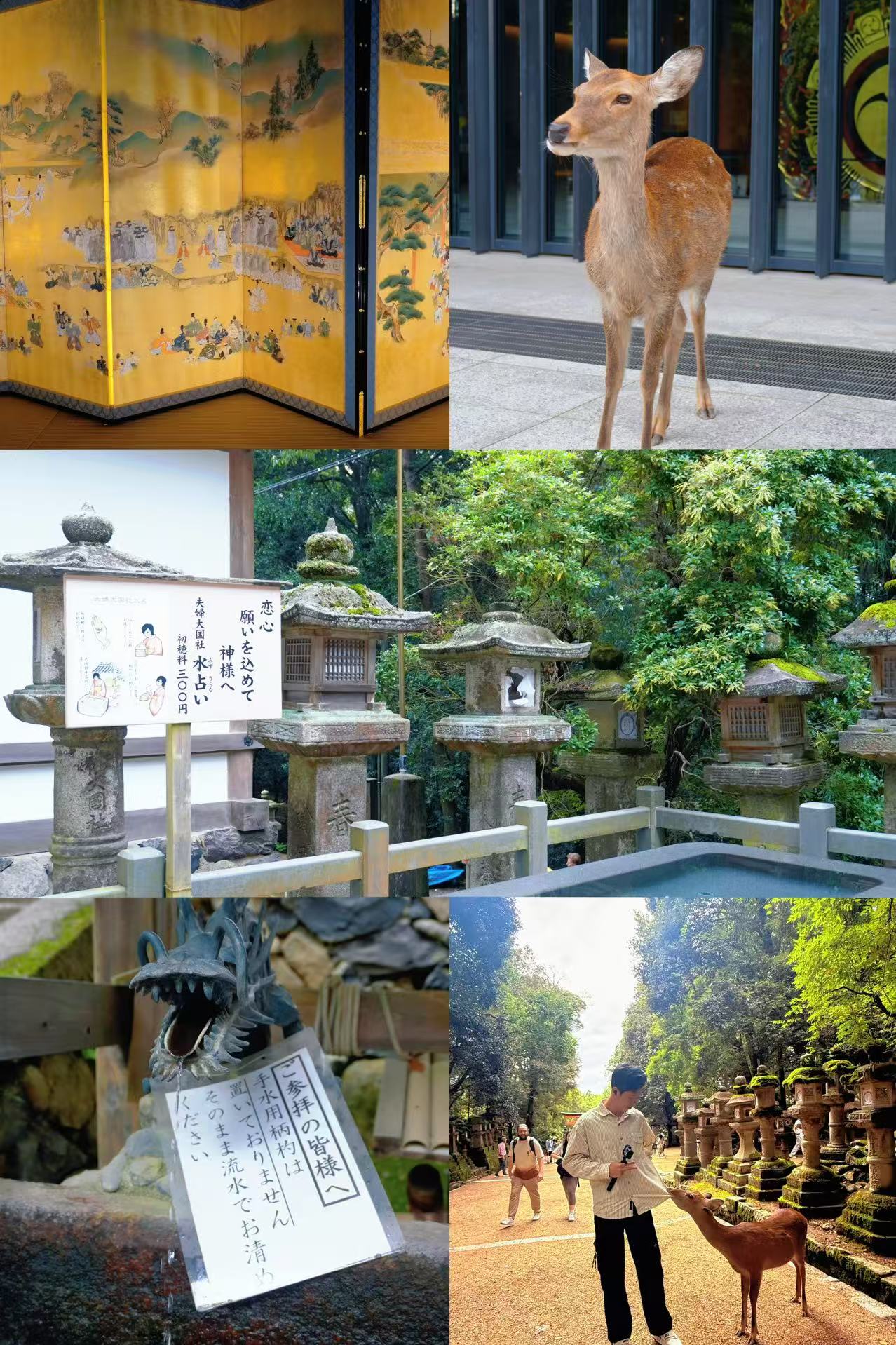 而奈良公园的鹿群与春日大社的幽深林境,则构成了另一重课堂。在与生灵的友善互动与穿越千年原始林的漫步中,学员们亲身感悟了日本文化中“人与自然共生”的信仰与实践。从匠人的“守拙”到自然的“敬畏”,两种不同的智慧,共同丰富了学员们对日本文化的立体认知。