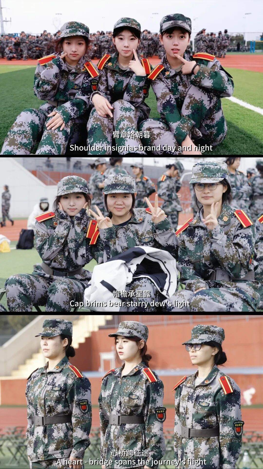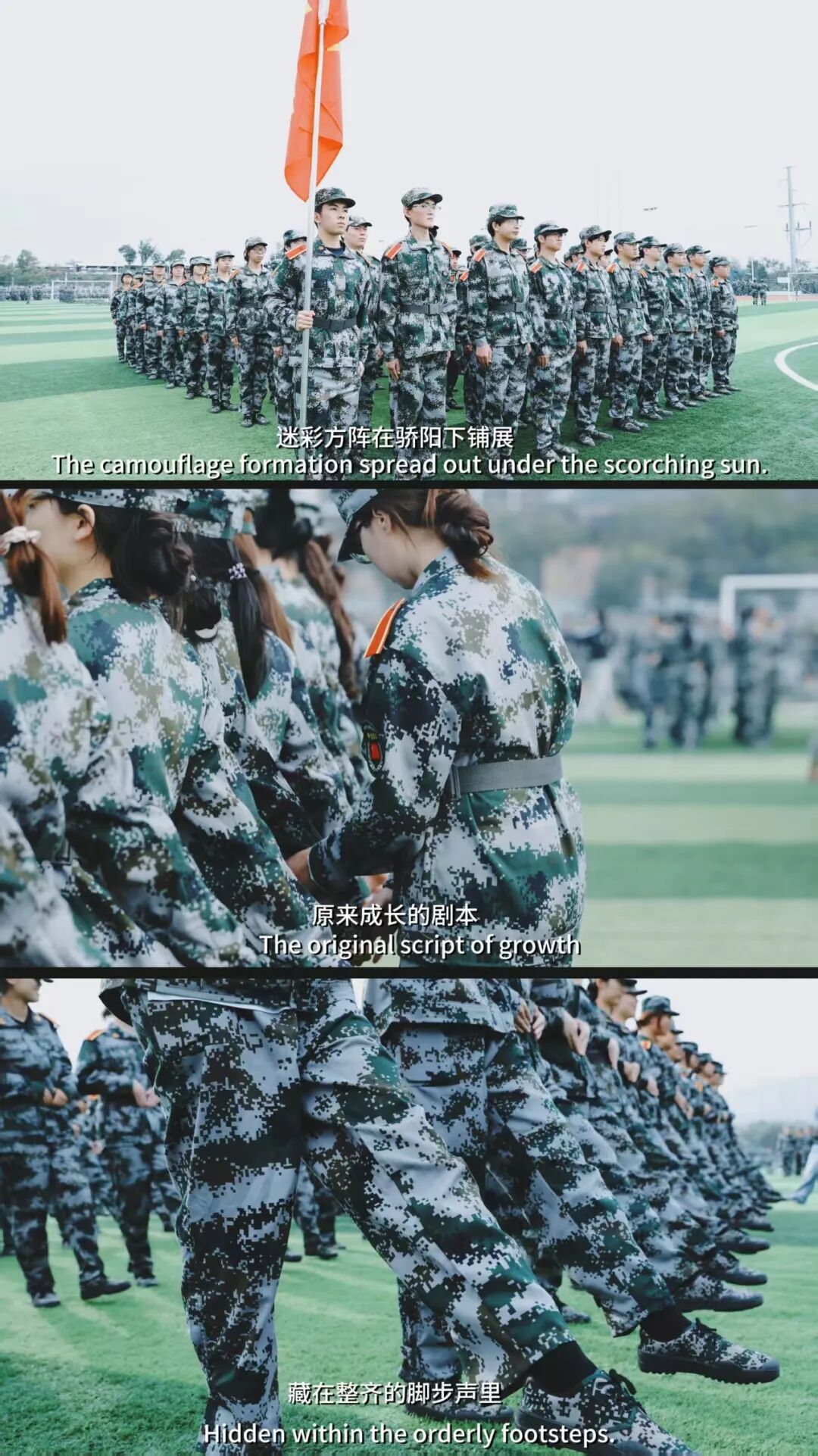 “原来成长的剧本,藏在整齐的脚步声里。”迷彩服被汗水浸得发亮,眼神里多了坚韧与笃定。站军姿时学会的坚持,正步训练时懂得的协作,围坐唱歌时感受的温暖,拔河胜利时体悟的团结……这些都成了成长的注脚,被妥帖地收进了青春的行囊。