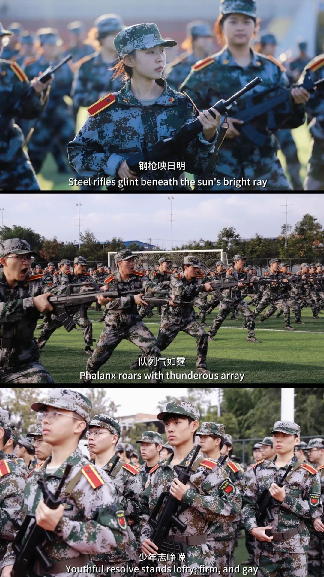 军训终会结束,但迷彩的记忆会永远鲜活。它是少年们大学生涯的序章,以硬核的训练打底,以温柔的陪伴润色,最终谱写成一首名为“成长”的史诗。往后的岁月里,当他们回望这段时光,定会记得:日光下淬火的锋芒,暮色里温柔的诗行,拔河绳上共振的心跳,以及,那段迷彩为衣、青春为马的滚烫日子。