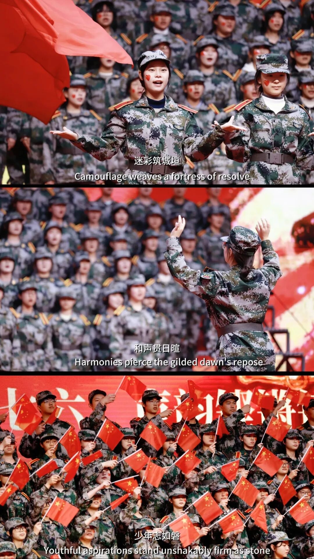 听,那熟悉的旋律响起——从《强军战歌》的豪情到《我爱你中国》的深情。或许嗓音已因训练嘶哑,但每句歌唱都饱含真挚。台下闪光灯汇成星海,掌声如雷。这不止是比赛,更是迷彩青春里最沸腾的篇章,见证着集体荣誉在旋律中绽放。