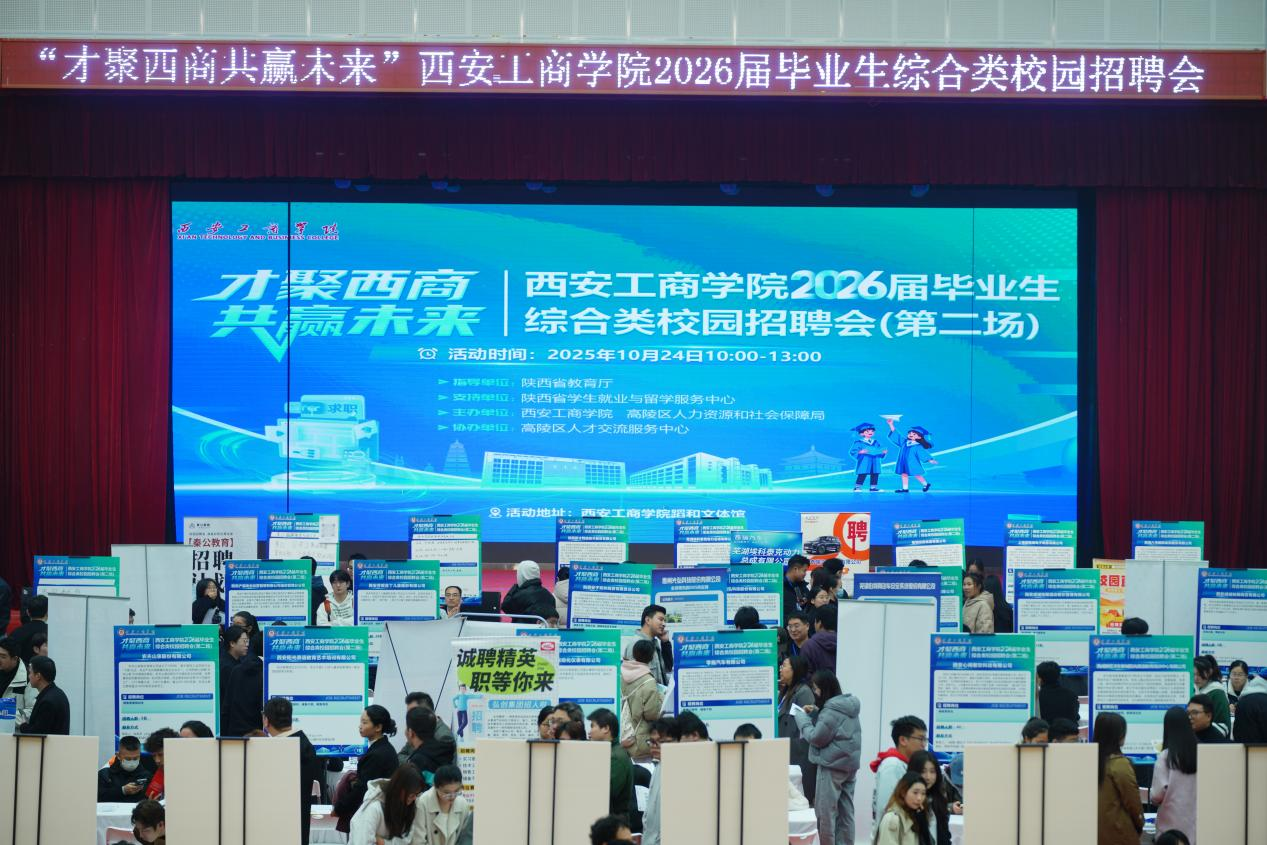 为深入贯彻落实党中央、国务院关于高校毕业生就业工作决策部署,抓住秋季学期促就业关键期,积极搭建校企对接平台,全力做好2026届高校毕业生就业工作,10月24日上午,由陕西省教育厅、陕西省就业与留学服务中心指导的“才聚西商 共赢未来”西安工商学院2026届毕业生综合类校园招聘会(第二场)在学校蹈和文体馆举办,此次招聘会吸引了奇瑞汽车股份有限公司、中国核工业二三建设有限公司、华羿微电子股份有限公司、深圳慧通商务有限公司、中创新航(武汉)科技有限公司等近百余家企业参会,覆盖机械、计算机、电子、财会、文化教育、艺术传媒等热门行业,提供就业岗位3200余个,我校2026届全体毕业生踊跃参会。
