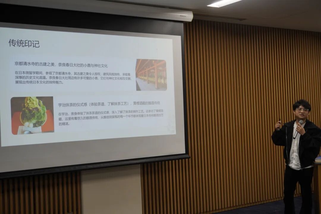 随后,各小组进行分组汇报,从环球影城“于无声处创造感动”的服务设计,到雅马哈展厅机械线条中蕴含的技术美学;从奈良公园“人与自然共生”的古老智慧,到丰田产业技术馆见证的匠心传承;从毛丹青教授“不拘形式的真诚相知”,到冈田昭人教授“理解差异的逻辑策略”进行系统性的梳理、整合与深化。