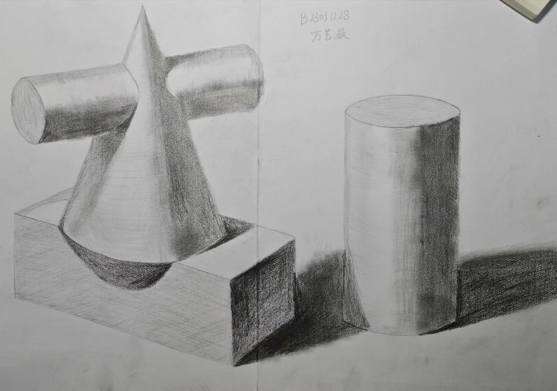 在素描纸上勾勒几何形体的光影变幻,于乒乓球台前挥拍打出精准弧线——方艺凝的身影穿梭在艺术、体育与学术的不同场域,诠释着当代优秀青年兴趣广泛的生动面貌。当她手握铅笔描绘圆锥与圆柱的明暗交界线,那份对形体结构的敏锐观察力,恰是严谨思维的视觉呈现;而转身握住乒乓球拍时,专注的眼神与敏捷的步伐又展现出截然不同的活力。