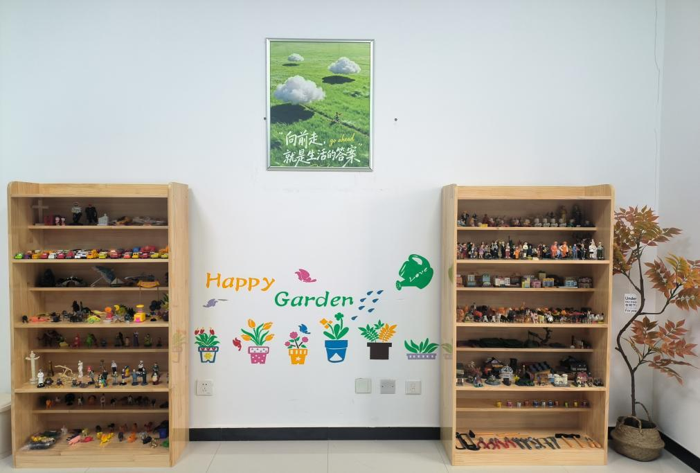 本次更新的一大亮点,便是我们的沙盘游戏室。沙盘游戏疗法作为心理辅导中重要的技术之一,一直深受同学们的喜爱。此次,我们重点对沙盘游戏室进行了扩容与美化,新增沙具陈列柜,全新的展示柜不仅收纳功能强大,更将沙具进行了科学分类与精美陈列。从人物、动物到建筑、自然景观,每一件沙具都触手可及,等待着与你相遇。